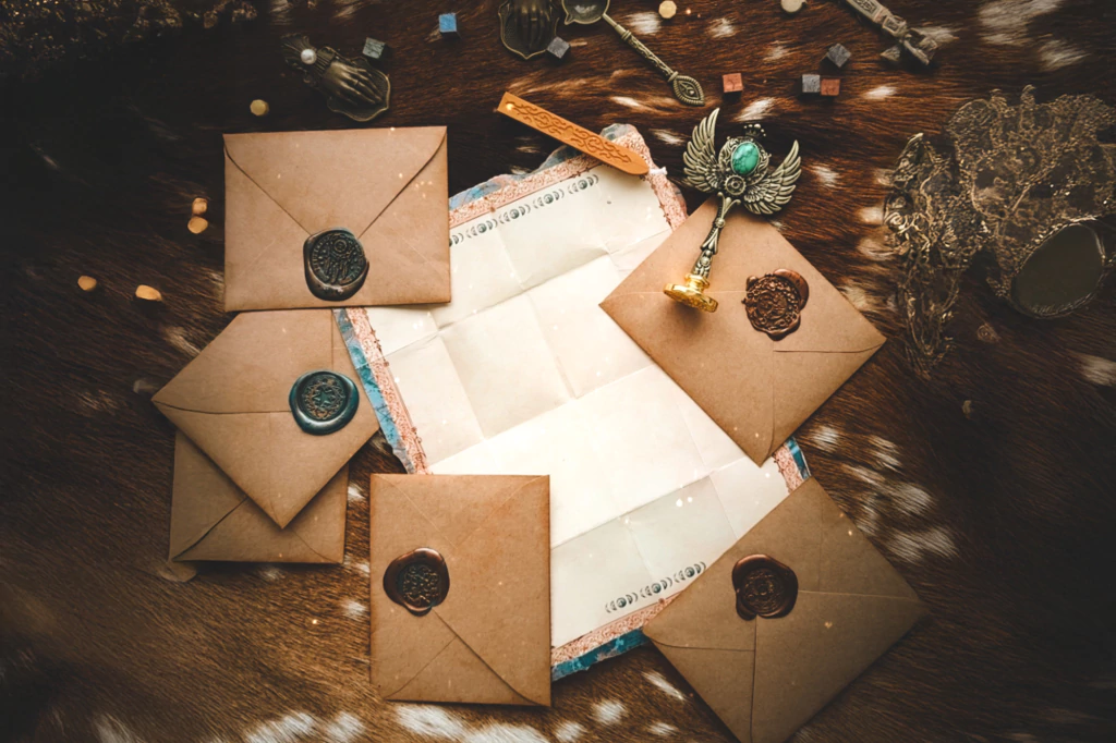 Vos nos pasás el texto y nosotras lo imprimos en un hermoso papel con diseño de ambos lados, una hermosa tipografia, luego envejecemos el papel, el sobre y lo cerramos con un sello de lacre...
