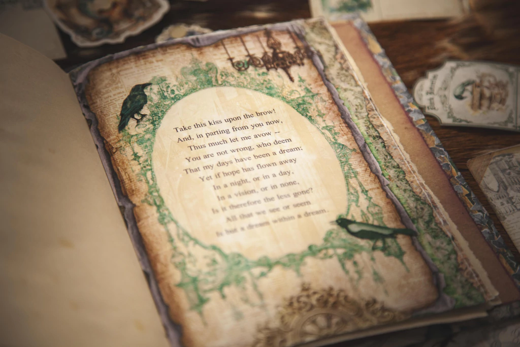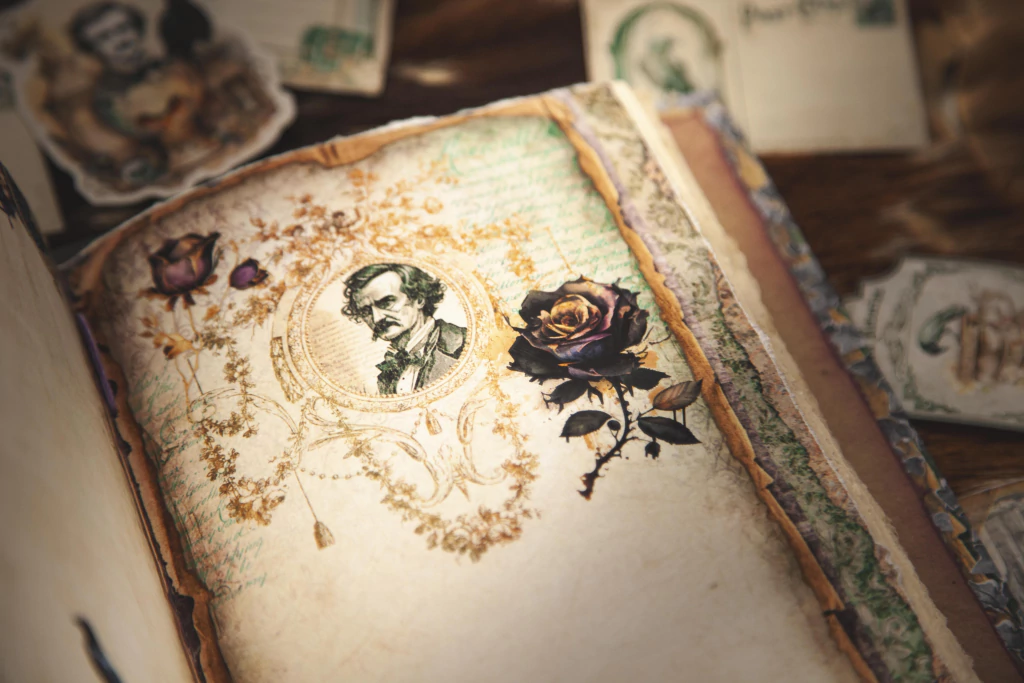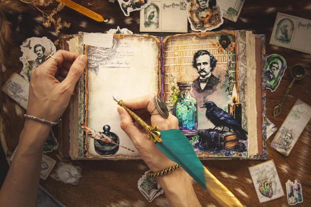 Además de las 100 hojas lisas para que las llenes como quieras, también está compuesto por 20 hojas impresas en calidad fotográfica full color, con motivos inspirados en Edgar Allan Poe.